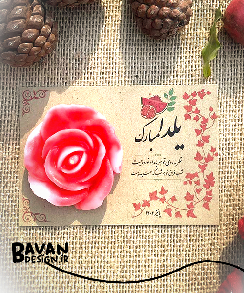 گیفت یلدایی شمع گل رز با کارت یادبود